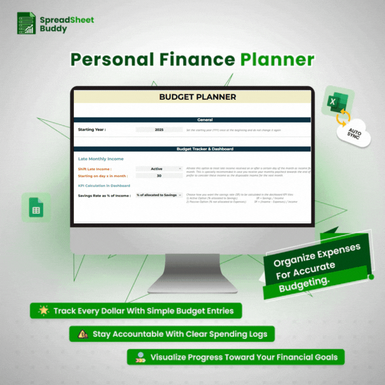 This Personal Finance Tracker is a smart tool that easily adapts to your unique financial situation. You can customize it by adjusting colors, fonts, categories, and layouts to reflect your financial priorities and personal style. Whether you’re tracking savings goals, managing expenses, or planning for future investments, this tracker is flexible enough to grow with you. Stay in control of your finances and ensure the tracker evolves to meet your changing needs.